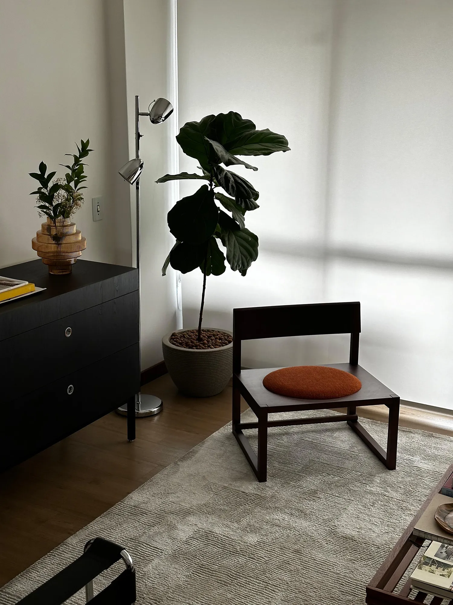 A poltrona Yang é uma peça baixa. Indicada para salas de estar, cafés, restaurantes e lounges.